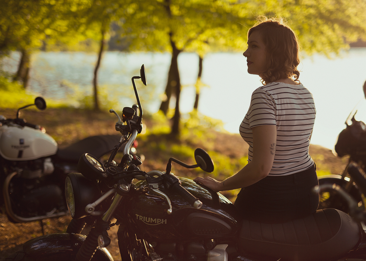 Sur le guidon de son élégante Triumph noire voici Mathilde, à l’origine de la première édition de « Wild Women’s Ride », dont l’envie d’une escapade entre nana à moto dans le Morvan a motivé son insatiable engouement et a permit de nous rassembler toutes. Le départ se fait de Paris, où chacune se retrouve ou se découvre. Le soleil est de la partie, si ce n’est pas un signe de chance je n’y connais rien.