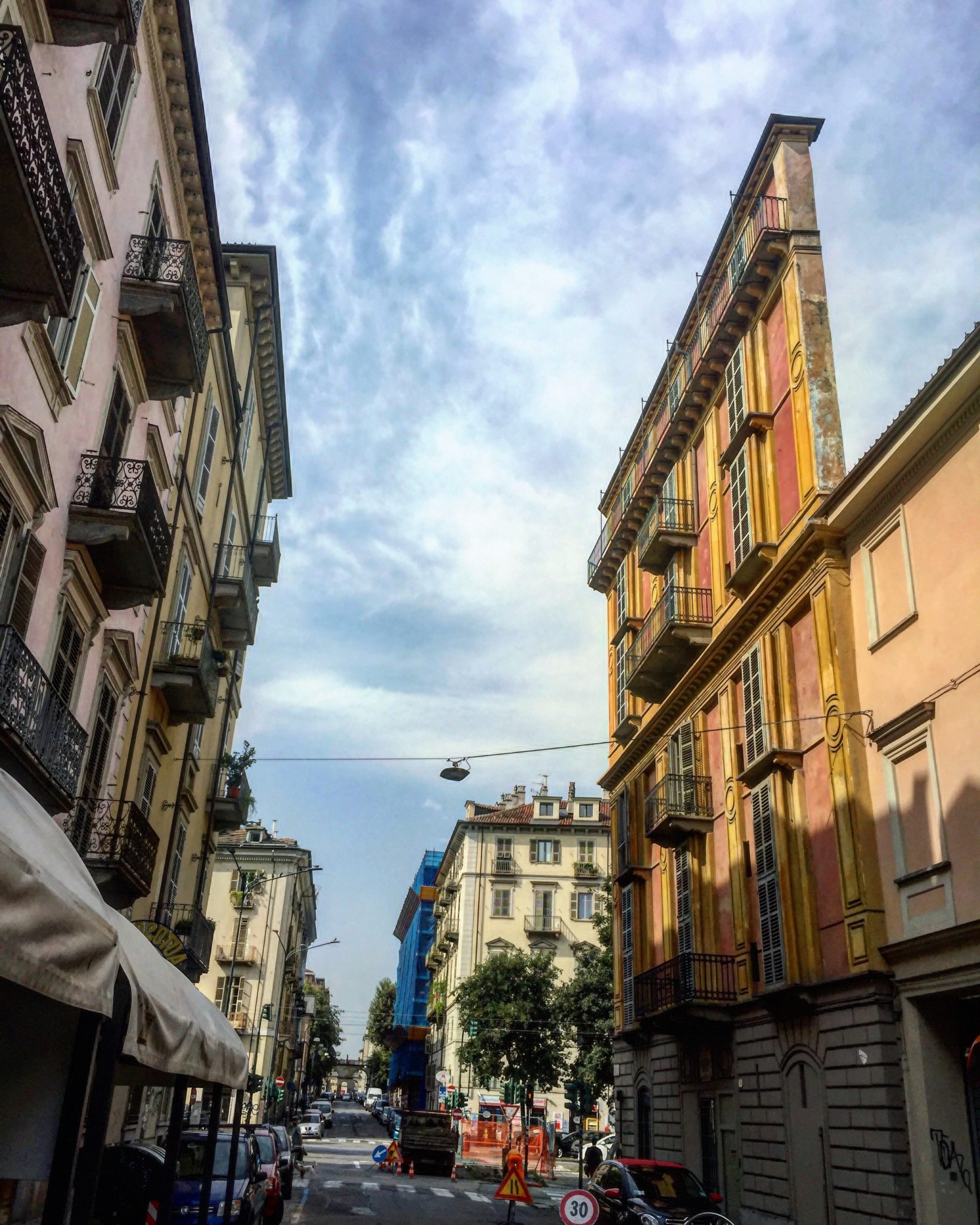 Non loin de là, on peut découvrir une vraie curiosité, la Tranche de Polenta, du même architecte. C’est l’un des bâtiments les plus insolites de la ville comme le dit le panneau explicatif que l’on trouve Via Giulia Di Barolo: « né d’un concours de circonstances: un passage sur le devant du Corso San Maurizio, et une retaille triangulaire de trois étages achetée en 1859 par Francesca Scaccabarozzi, épouse d’Alessandro Antonelli (1798-1888) . En 1881, cet architecte surélève l’édifice de deux étages couronnées par un grenier, le portant à 27m de hauteur et de longueur: mais la largeur reste de cinq mètres sur le devant, et seulement soixante-dix centimètres sur le côté opposé. » J’adore m’enrichir culturellement sur les endroits que je visite, rien de mieux qu’une personne locale pour m’en apprendre plus. J’ai appris cette fois-ci par exemple que mon dessert préféré venait de Trévise!