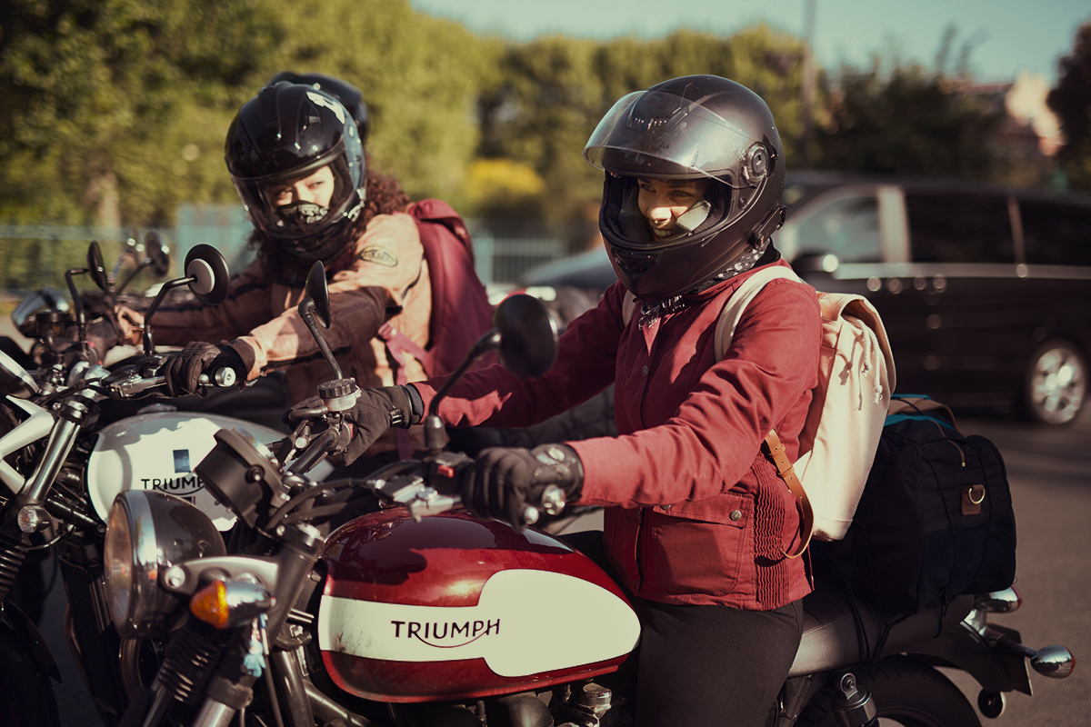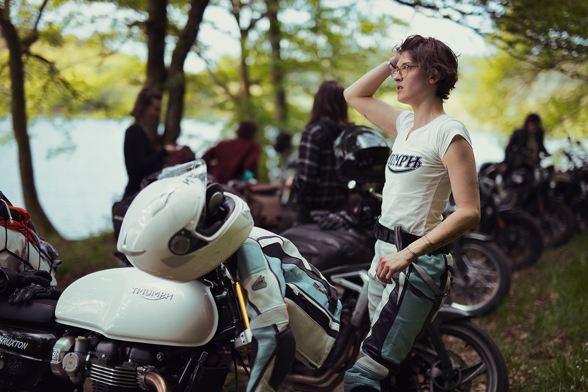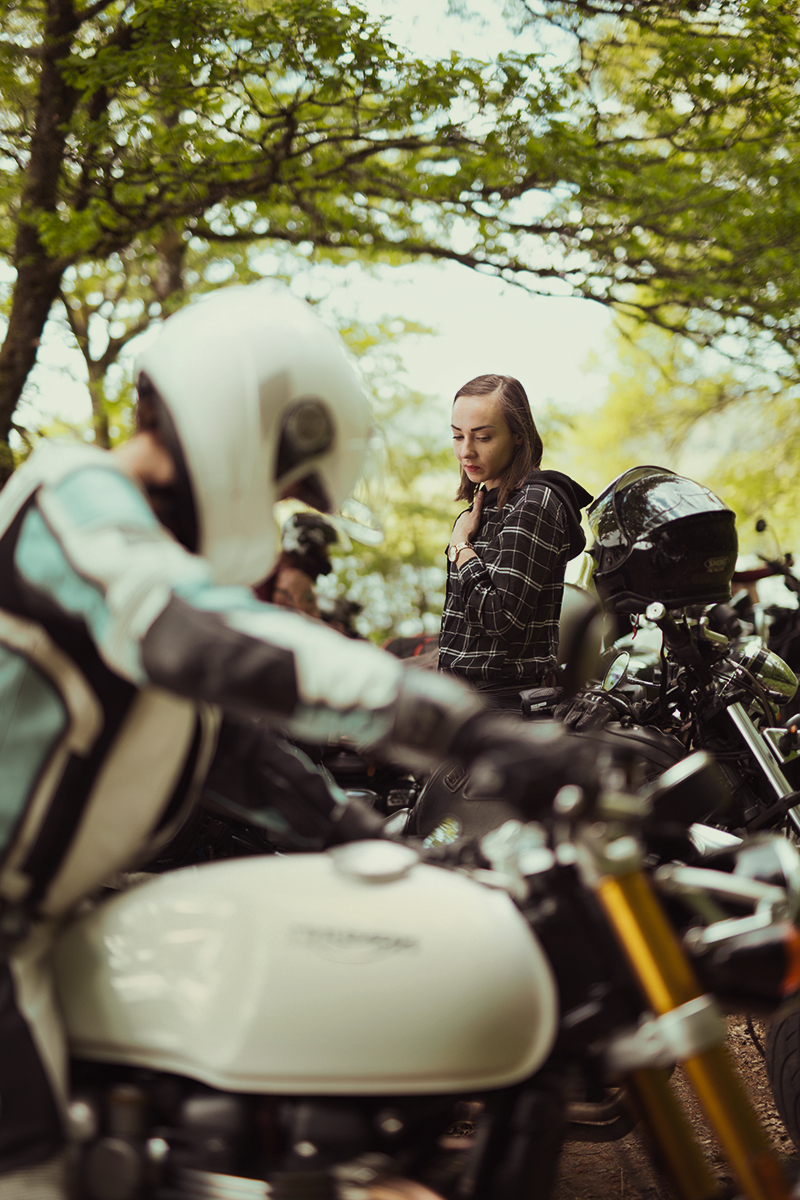 Sur le guidon de son élégante Triumph noire voici Mathilde, à l’origine de la première édition de « Wild Women’s Ride », dont l’envie d’une escapade entre nana à moto dans le Morvan a motivé son insatiable engouement et a permit de nous rassembler toutes. Le départ se fait de Paris, où chacune se retrouve ou se découvre. Le soleil est de la partie, si ce n’est pas un signe de chance je n’y connais rien.